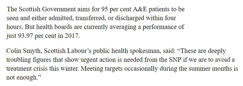 Smyth is a man of the highest expectations. In 2017, he famously described 93.97% of A&E patients being see in 4 hours as ‘deeply troubling.’