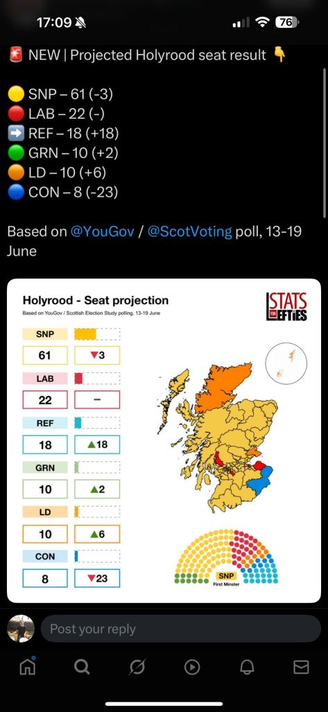 You’re left to wonder if this YouGov Holyrood poll may be significantly under-estimating SNP support for May 2026 and the delicious prospect of the removal of Jackie Baillie and Rachael Hamilton!