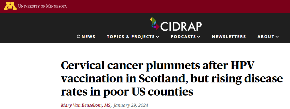 Two new studies describe rates of invasive cervical cancer among women vaccinated against human papillomavirus (HPV, the causative pathogen) dropping to zero in Scotland with early vaccination but rising in women in low-income US counties. Scotland rolled out its national HPV vaccine program in 2008, with routine immunization of girls aged 12 or 13 and an initial 2-year catch-up for girls aged 14 to 18 years.