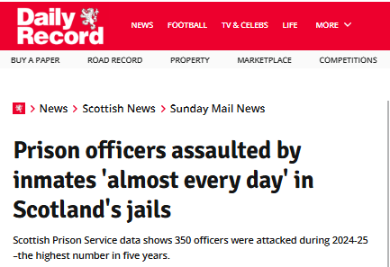 One thought on “‘Prison officers assaulted by inmates three times a day in England’s jails’ – Assaults on prison officers in England & Wales nearly THREE times as frequent as in Scotland.”