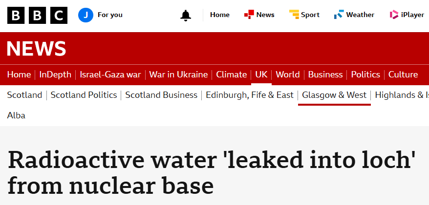 Radioactive water from a Royal Navy nuclear weapons base leaked into a loch after old pipes repeatedly burst, according to official files. The Guardian, external and The Ferret, external found the material was released into Loch Long, Argyll and Bute, after a six-year battle to access documents which involved Scotland’s Information Commissioner, external.
