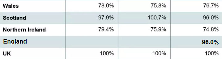 Most of all, I wonder why do we not see in the table the average for England to compare with the other 3 nations and the UK 100%? You see the answer in the first table above and the obvious message in my headline.