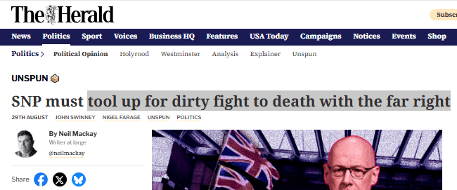 9 thoughts on “The SNP should absolutely not charge in and ‘tool up for dirty fight to death with Reform UK’. It should focus on its demonstrable and many strengths