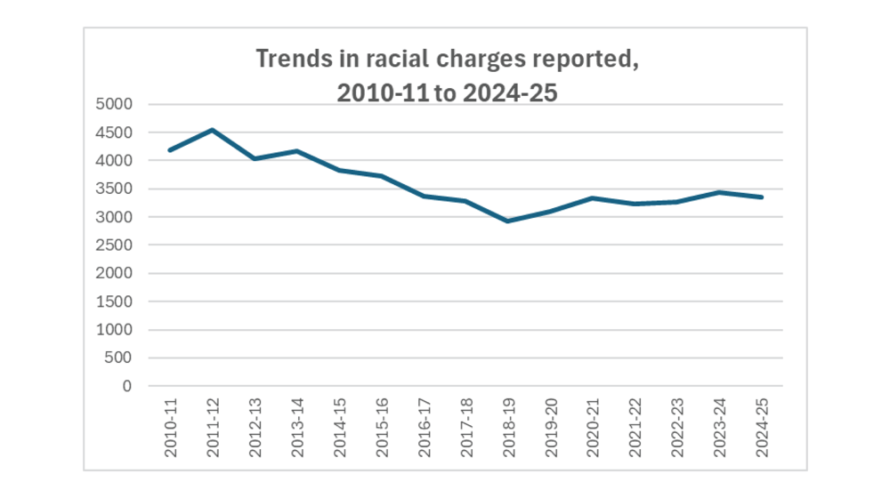 Racially aggravated crime is in steady decline since 2010 and with an unrepresentative during the pandemic to misleadingly suggest and increase thereafter which is merely a return to the long-term trend.