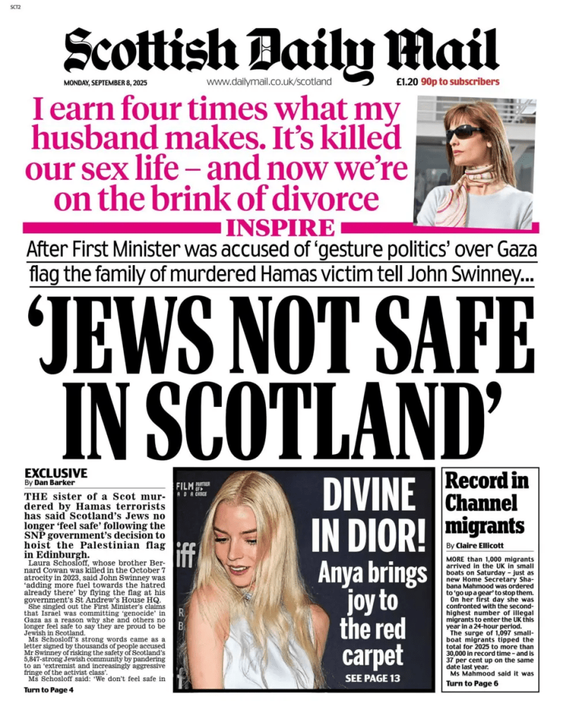 ‘The Scottish Government holds no power over foreign policy and no meaningful influence over the State of Israel – The decision to pull a tiny amount of funding from a handful of commercial projects will not impact the Israeli government or change the course of the war – In short, the only people this announcement will materially affect are Scottish Jews who are already under siege.’