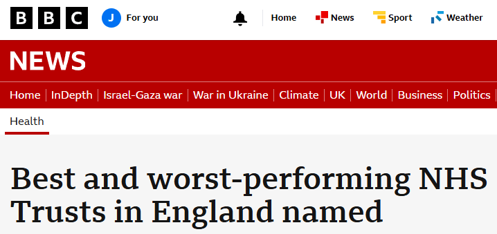 At the bottom is Queen Elizabeth Hospital in King’s Lynn, which has had major problems with its buildings because of structural weaknesses and the need for props to hold up ceilings. Health Secretary Wes Streeting said the tables will identify where “urgent support is needed” – but trusts have questioned whether the league tables were using the right metrics.