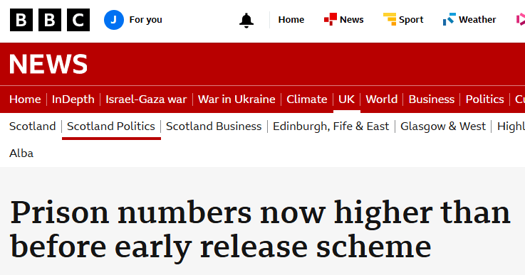 While there are no statistics for that same precise period, in 2024, according to the BBC, the Scottish Government only released 477 early and only those serving less than 4 years:
