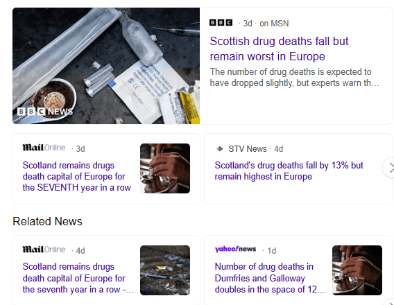 The ‘Scottish‘ media above collectively hanging on to our drug deaths sadness and discounting any progress.