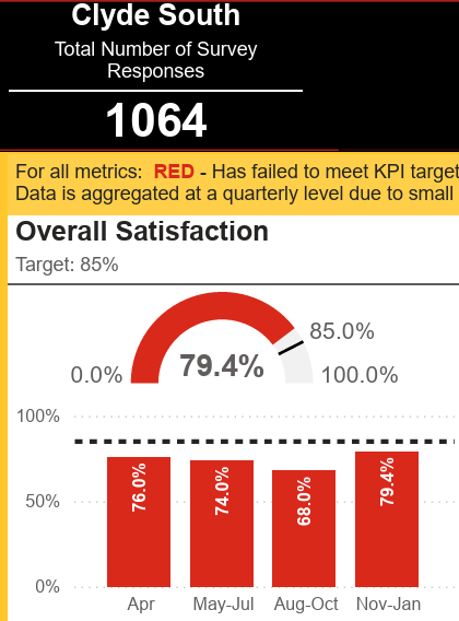In January 2025 and covering the period April 2024 to January 2025, 79.4% of 15 000 survey respondents on the Brodick/Ardrossan, Claonaig/Lochranza and Tarbert/Lochranza services.