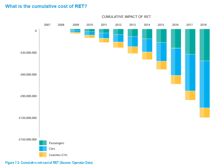 RET is now costing the Scottish Government around £25m per annum in revenue support, around two thirds of which is supporting reductions in car fares.1