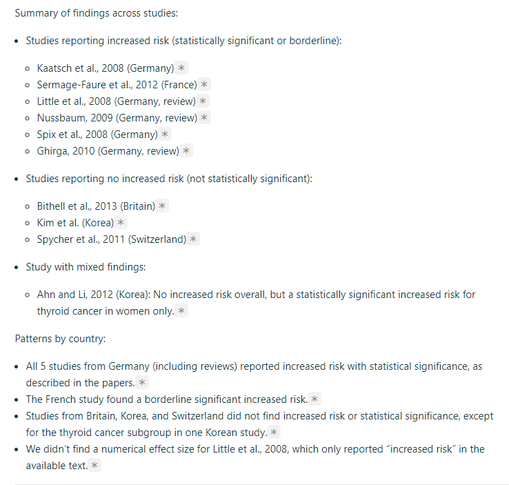 This is stark. Why do 5 German research groups all find statistically significant risks to health in living within 5km of a nuclear power station and why is there only one recent British study and it finds no risk?