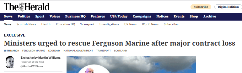 So, in March 2025, the Herald says give Ferguson Marine work without the need for competitive tender.