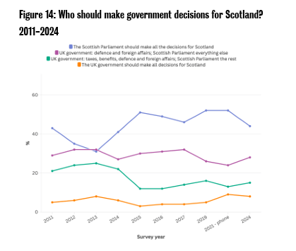 75% of Scots want control of everything other than defence and foreign affairs and 50% are calling for that too