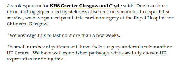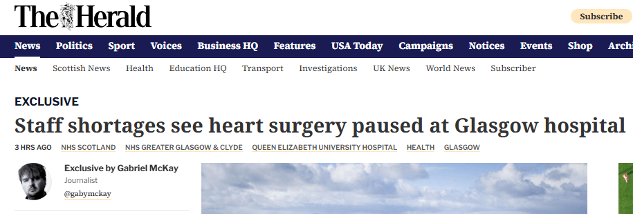Children in Glasgow have been taken to England for vital heart surgery due to staff shortages at the Royal Hospital for Children. It’s understood that due to a number of anaesthetists leaving the health centre, as well as some shorter notice absences in the wider staff, heart surgery has been suspended.