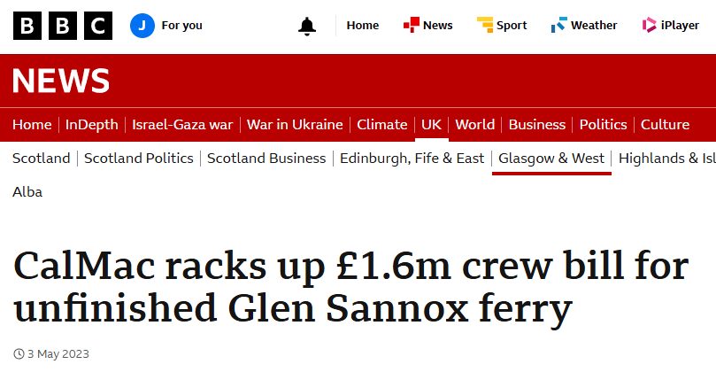 Note carefully the BBC’s headline for the story provided by the Tory Party in Scotland: Over £1m spent on sending Scottish ferry staff to Turkey. (See https://www.bbc.co.uk/news/articles/ce3kvd0kp9vo)