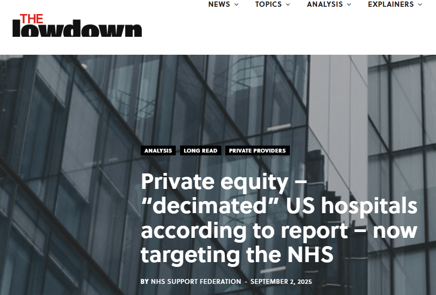 These reports are from the USA, but private equity’s interest in healthcare is global, including the UK.