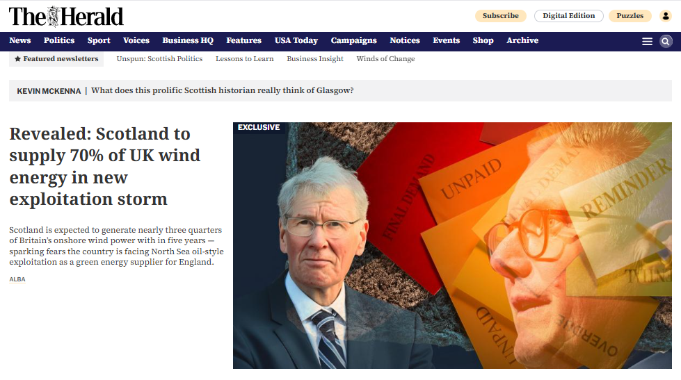 Scotland is expected to generate nearly three quarters of Britain’s onshore wind power with in five years — sparking fears the country is facing North Sea oil-style exploitation as a green energy supplier for England.