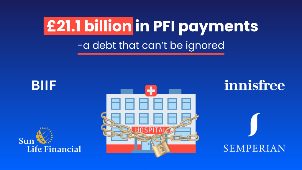The NHS is haemorrhaging billions to private companies through Private Finance Initiative (PFI) contracts at a time when the health service desperately needs investment in staff and infrastructure. An EveryDoctor investigation has uncovered that 69 NHS trusts in England are locked into paying more than £21.1bn to private companies over the next two decades – money that could be spent on doctors, healthcare staff, patients, and critical repairs. The total spent on PFI debt and interest payments (£3.1bn) would have been more than enough to pay for all the most urgent repairs required to NHS buildings. The total cost to eradicate the high risk maintenance backlog in the NHS, in England alone, reached £2.7bn last year.1