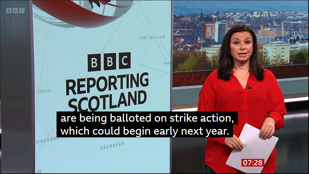 BBC Scotland does mention that strikes were avoided last year but did not tell viewers what had been achieved ie avoided, by the Scottish Government’s actions.