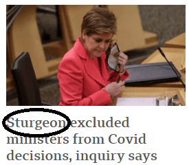 I see only the BBC Scotland web page headline names a politician within a negative framing, in Wales & N Ireland headlines are negative but no names initially, the England page has no story and the UK page headline has already moved on to how things could have been handled differently, letting them balance out the criticism of Boris Johnston’s government with the message that all 4 governments messed up. I’m sure when I muster the energy to read the full report there will be more nuance but a glance at the key findings summary (covid19.public-inquiry.uk/documents/module-2-in-brief-report/) it appears flawed. For example, in saying all 4 nations failed to act quickly enough and that health is a devolved issue surely the report ignores the financial restrictions on the devolved governments, their inability to borrow or make decisions to close borders etc. Of course this makes them “too reliant” on the UK, an argument for independence if ever I saw one.