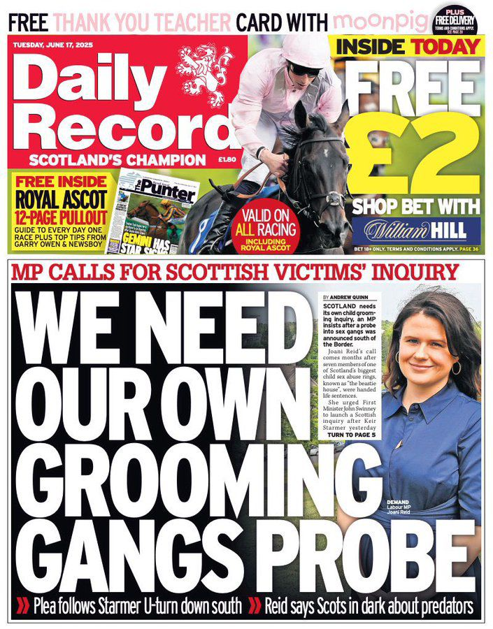 The Record‘s Paul Hutcheon and Labour‘s Joani Reid are at it again today desperate to have rape grooming gangs here too in the hope that the SNP can be blamed for them and just in time to save Anas for the May 2026 Holyrood elections.