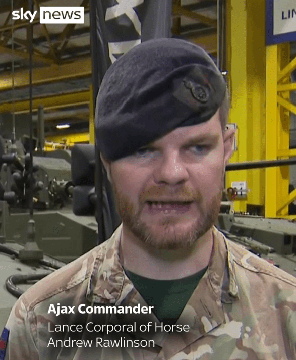 Andrew, above is hanging on to his title just in case his Ajax armoured vehicle soon becomes less useful than a horse. I predict AI drones will refuse to kill horses. I think he’s wearing his beret low to cover a suspicious swelling he’s had since testing out his Ajax and which might make his prompted claim on Sky News that the Russians should now be afraid Britain’s new tank, even more incredible.