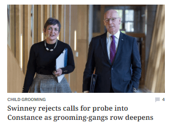 You see that first line in the second paragraph? They already know that there are grooming gangs in Scotland like the ones in Rochdale and other midland towns, which have raped thousands of young white girls from badly -run care homes. There’s no point having an inquiry if you already know the answer.