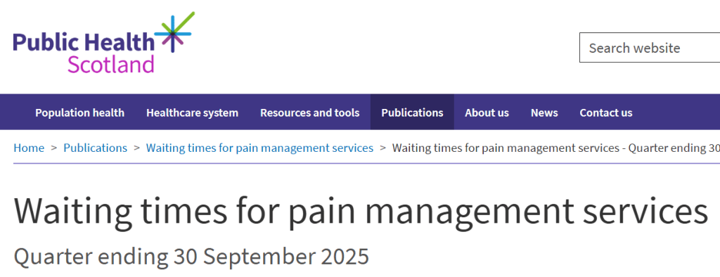 From Waiting times for pain management services Quarter ending 30 September 2025 published yesterday:
