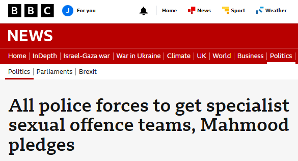 All police forces to get specialist sexual offence teams, Mahmood pledges – Specialist rape and sexual offence investigation teams will be introduced to every police force in England and Wales by 2029, the government has pledged. It is part of a long-delayed plan aimed at halving violence against women and girls within a decade.