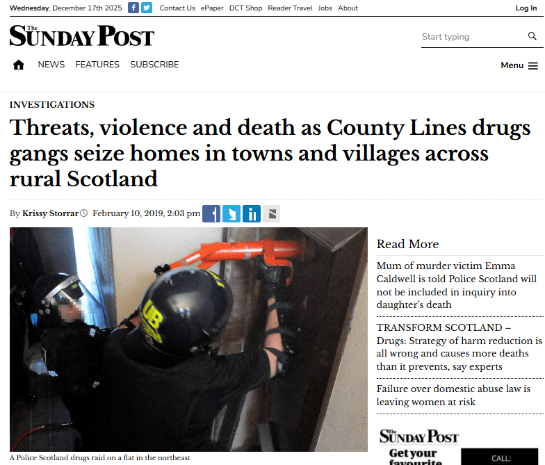In the P&J today, the above evidence that English drug dealers are still exploiting the vulnerable in Aberdeenshire, fuelling drug deaths and extreme violence nearly seven years after the first report in the Sunday Post: