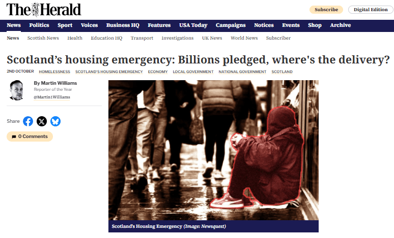 On 2nd October 2025, the Herald had the above image of rough sleeper begging on the streets.