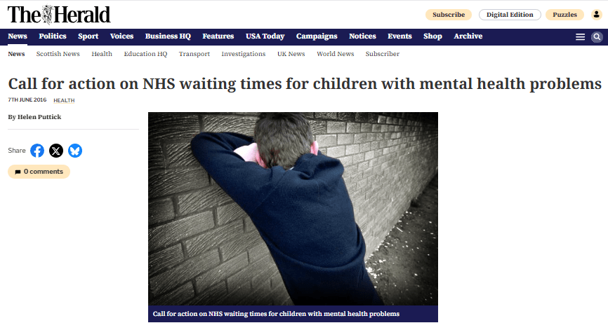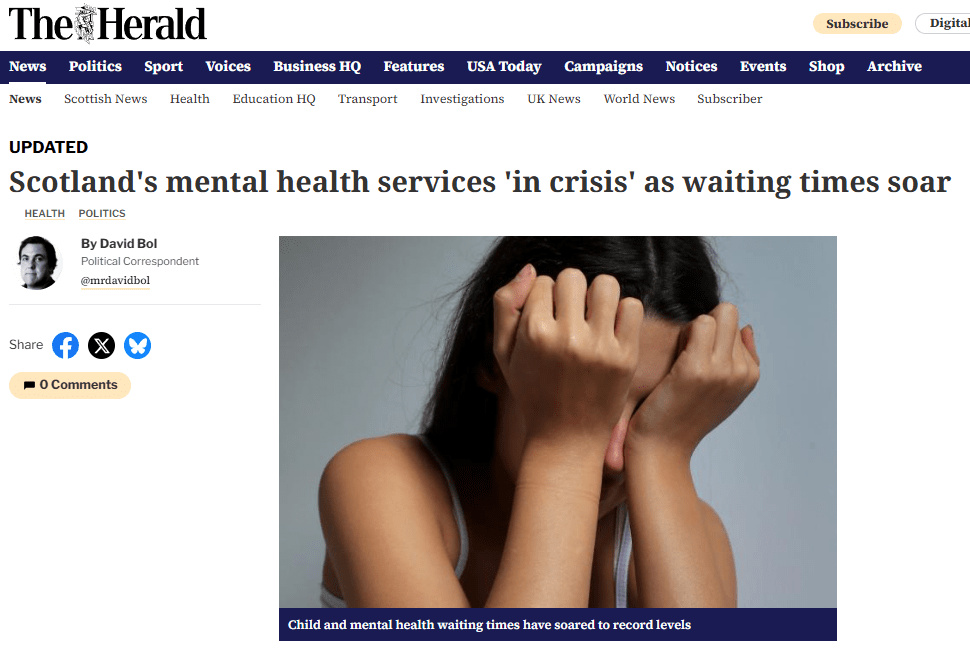 The Herald 18 October 2025 headlined their report on autism and ADHD waiting times with an apparently tragic image of tearful wee, Madeleine McCann-like, fair-haired girl of 3 to 4 years, to somehow represent it’s content.