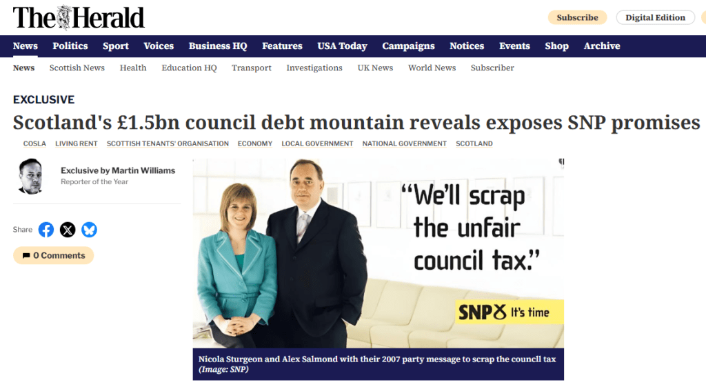 Exclusive – Scotland’s £1.5bn council debt mountain reveals (sic) exposes SNP promises