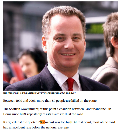 What would the £1bn have achieved in 2007? At the time £600m was being quoted to dual Perth to Inverness: