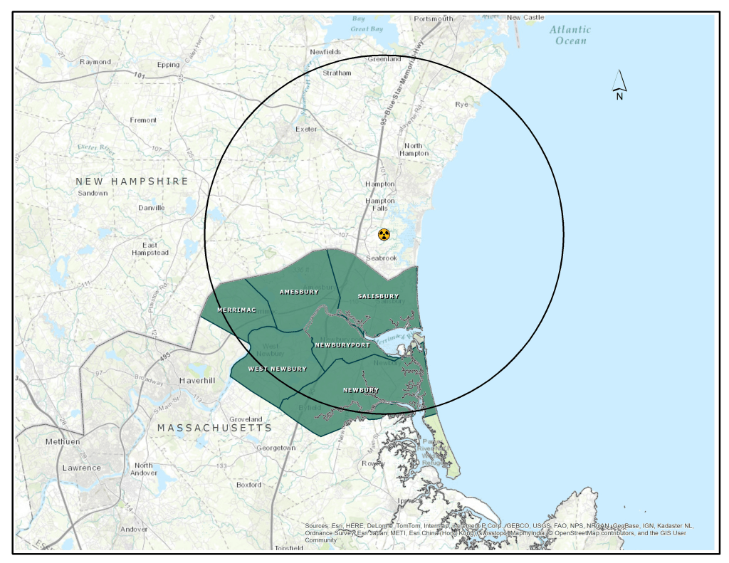 The Seabrook Nuclear Power Station (“Seabrook”) is located in Seabrook, New Hampshire. The area that is approximately 10 miles around Seabrook is called the Emergency Planning Zone (EPZ). Massachusetts communities in the EPZ are: Amesbury, Merrimac, Newbury, Newburyport, Salisbury, and West Newbury. People that live, work, or vacation within the 10 mile EPZ should be prepared for an emergency at Seabrook and be familiar with the EPZ’s emergency plans and procedures.