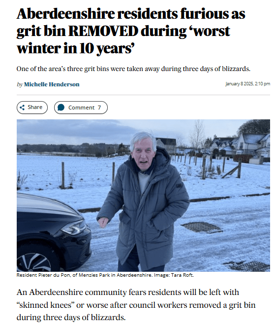 In February 2025, by a vote of 43 to 21 the council voted for a budget including it its appendices a plan to remove 1 200 out of 2 100 grit bins.