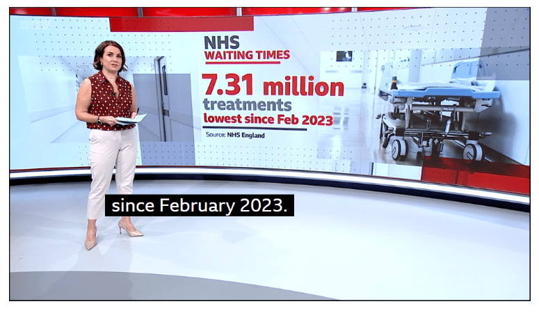 On BBC News at 1pm today, revealing a decline in the number of hospital treatments carried out under Labour in 2025, from 7.4m to 7.31m.