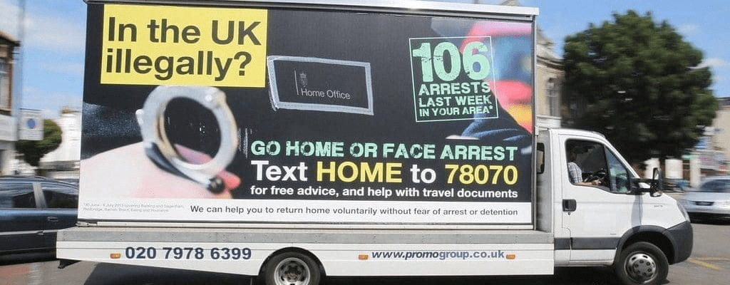 Readers may remember Theresa May’s hostile environment posters in 2013, were explicitly aimed to create a hostile environment for immigrants and their families already living here.