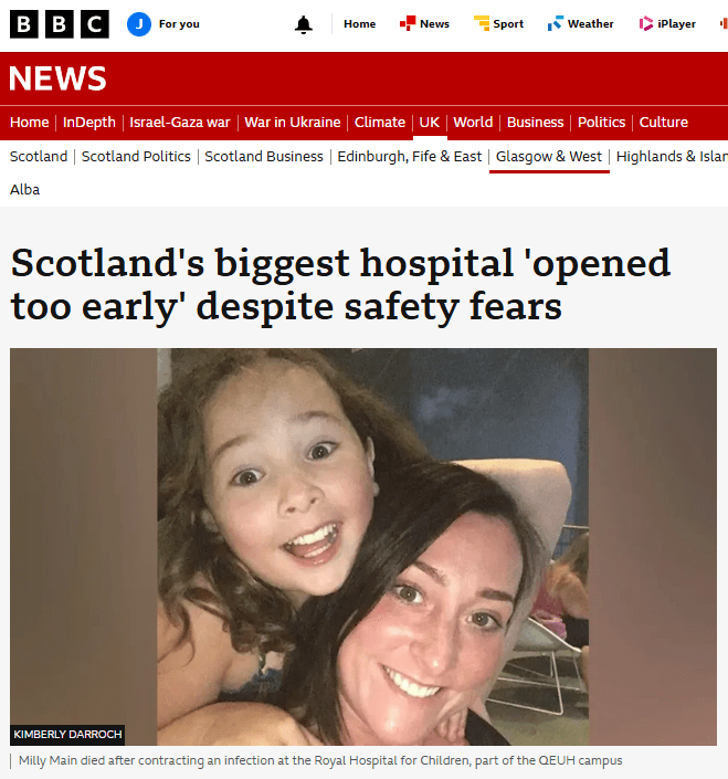 NHSGGC offers an unreserved apology for the distress and trauma experienced by patients and families during this time. But while the health board acknowledged a casual [sic] connection to increased infections, he stressed that there was no definite link between the hospital environment and specific individual cases of infection.