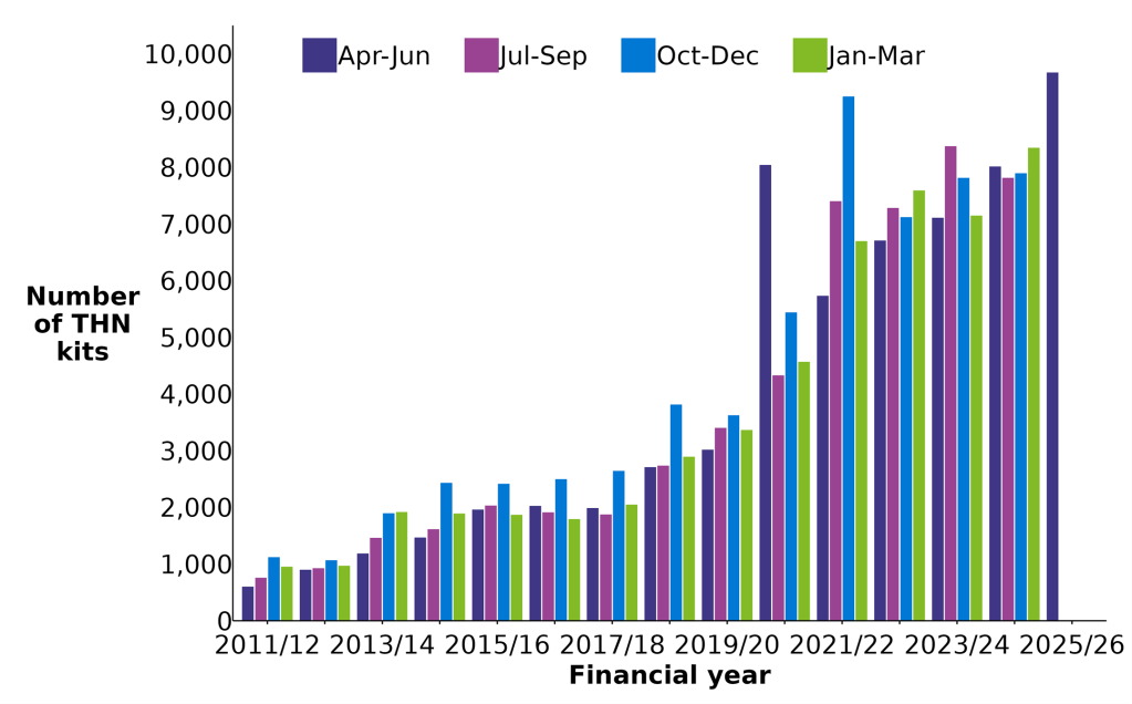 - 7,724 THN kits were issued by services based in the community: