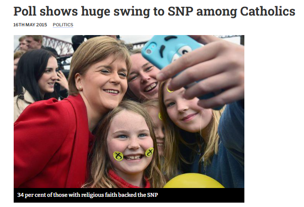 ROMAN Catholic voters in Scotland abandoned their traditional support for the Labour party and switched to the SNP in large numbers in last week’s General Election, with almost half of Catholics voting for the party that took 56 of Scotland’s 59 seats.