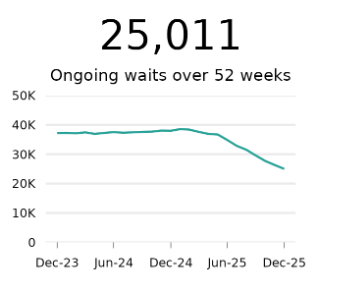At 31 December 2025, the number of ongoing inpatient or day case waits for treatment in no longer that 12 weeks, was 156,314, down 0.9% from the end of November and 1.6% from 31 December 2024.