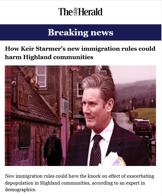 New immigration rules could have the knock on effect of exacerbating depopulation in Highland communities, according to an expert in demographics. In May last year Prime Minister Keir Starmer announced a significant tightening of UK immigration policy, aiming to reduce net migration by 100,000 annually by 2029.