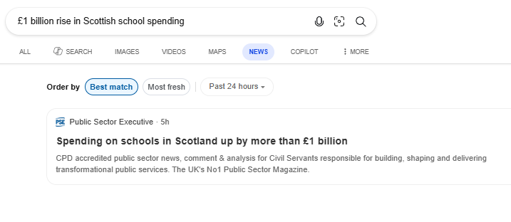 Above the complete media coverage of a major Scottish Government announcement on school funding, 16 hours after it was first posted.