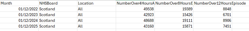 So, all A&E waits are lower than they were 4 years ago and lower than they were last year. The first media reports of ‘corridor care’ in Scotland were around July 2024. Given that A&E waits, especially 12 hour waits, are now significantly lower than in 2024, that suggest politics rather than facts.