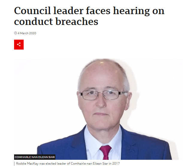 In 2020, the council leader faced a hearing for failing to declare an interest in a relative’s company. https://www.bbc.co.uk/news/uk-scotland-highlands-islands-51744151