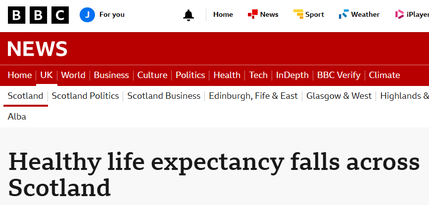 I suspect it’s a mix of things, people being less healthy into their old age, it could be in fact due to pollution, higher cancer rates due to EngGovs’ nuclear leaks in Scotland etc. and additives in food, perhaps less exercise, and of course, poverty being a huge factor.