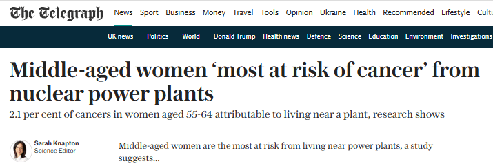 Even the Telegraph has reported this shocking new research suggesting serious concerns for those living near nuclear power stations. The Telegraph has a strong editorial policy to support new nuclear energy proposals1, so this is remarkable.