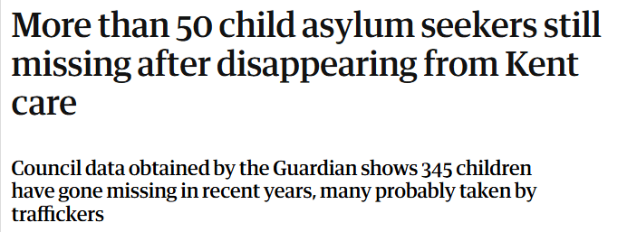 There are reports of child asylum seekers or child refugees going missing in Scotland though the numbers are much smaller than in even this one county in England. In 2017, the Daily Record 5 out of 46 going missing.1 Between 2018 and 2020, the Ferret reported 11 out of 600 going missing.2