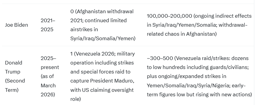 If you look instead at US military deaths, Trump has far, far, fewer attributable to him.